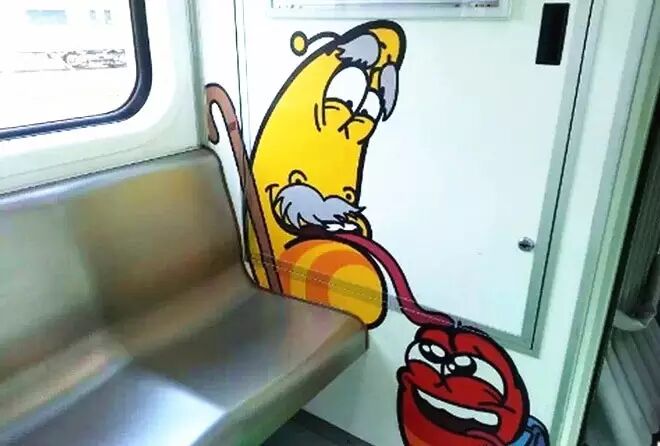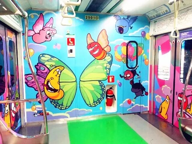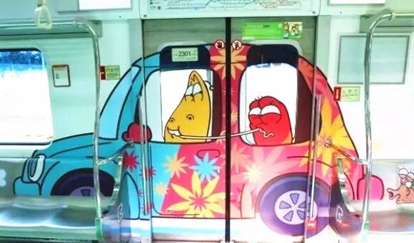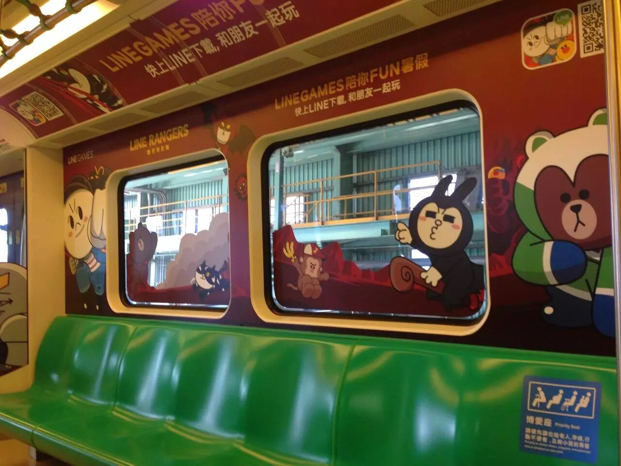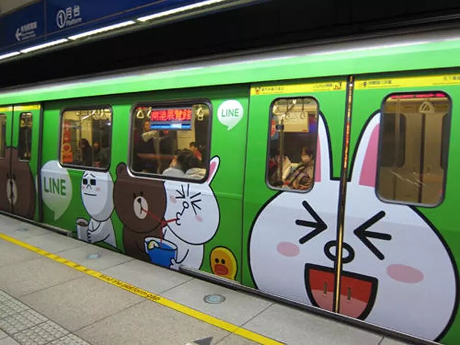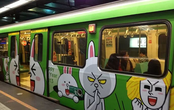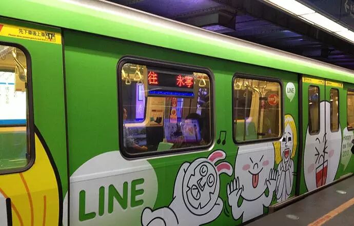應(yīng)用軟件 Line 在臺灣地區(qū)非常流行,而 Line Character 人物也順理成章的登上了臺北的捷運車廂。每天通勤時能與萌萌的布朗熊、可妮兔、饅頭人以及詹姆士等伙伴相遇,心情也會變得美好起來哦。