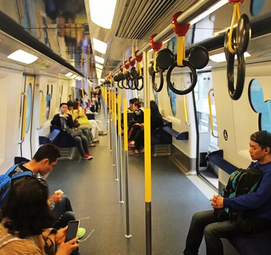 搭乘地鐵迪士尼線可以從欣澳站直達香港迪士尼樂園,而這一段地鐵也充滿了迪士尼特色,車廂里很多米老鼠標識,并且有很多迪士尼卡通人物的小雕塑,非??蓯?。此外,地鐵迪士尼線從車站到車廂布置都充滿著夢幻氣氛。