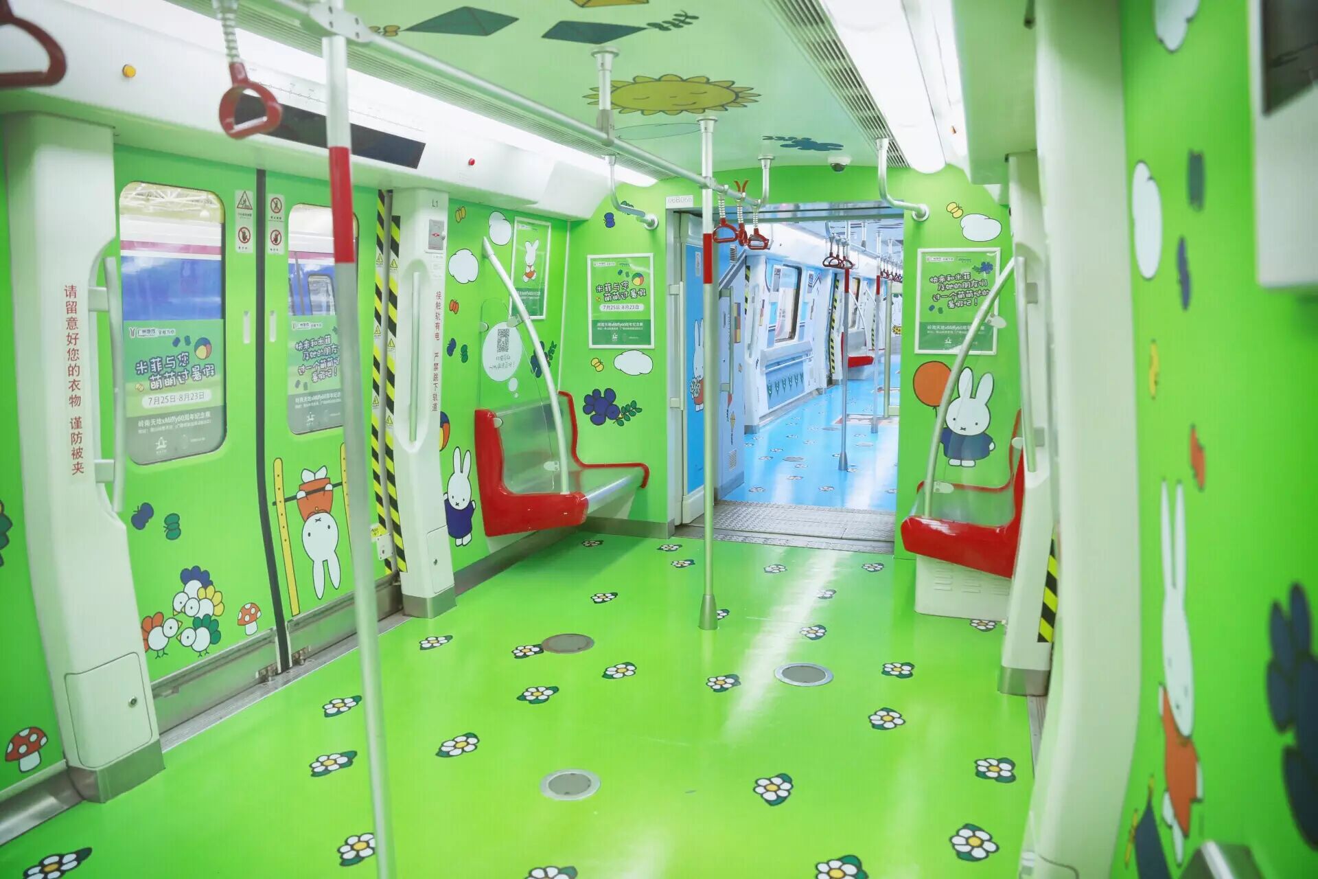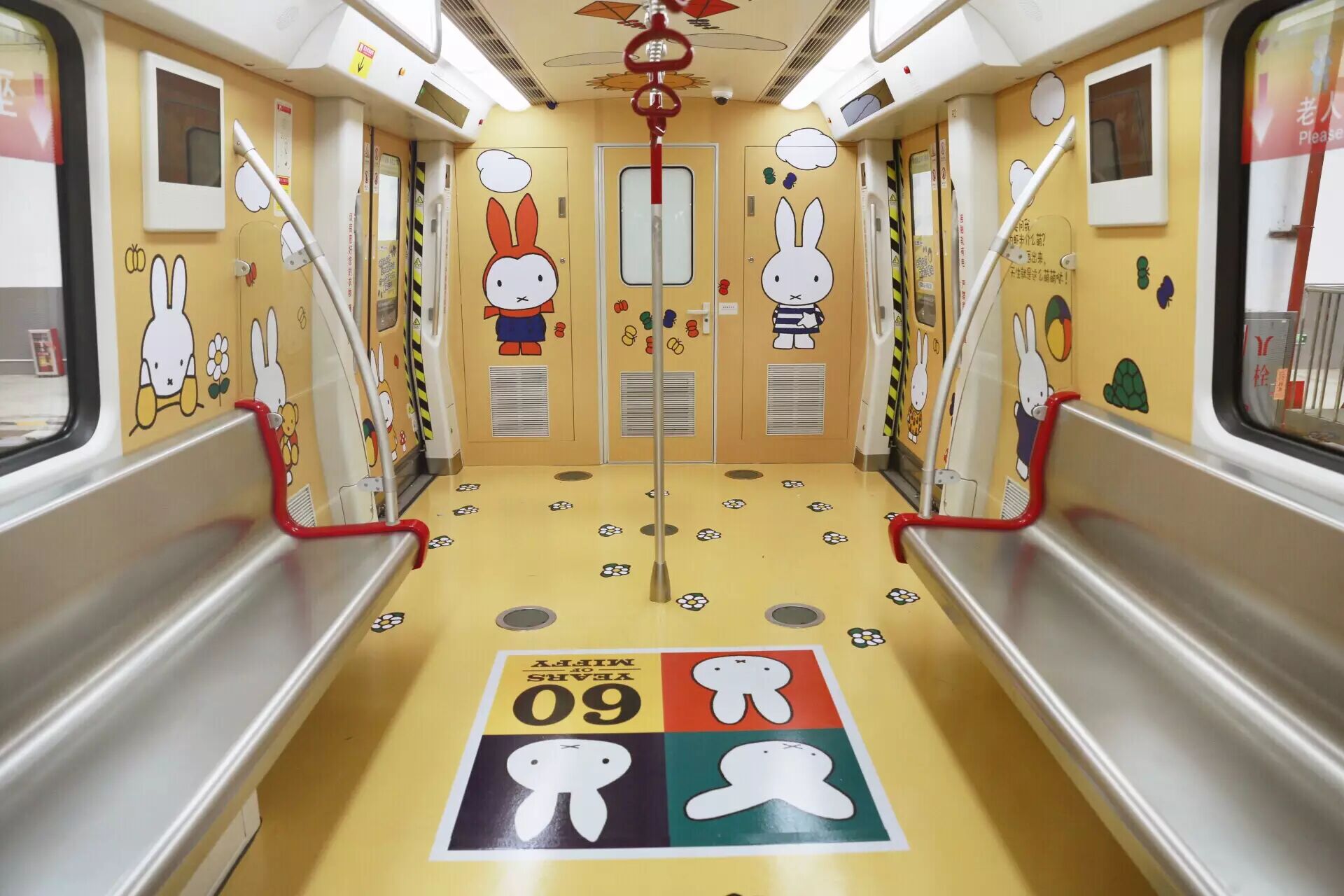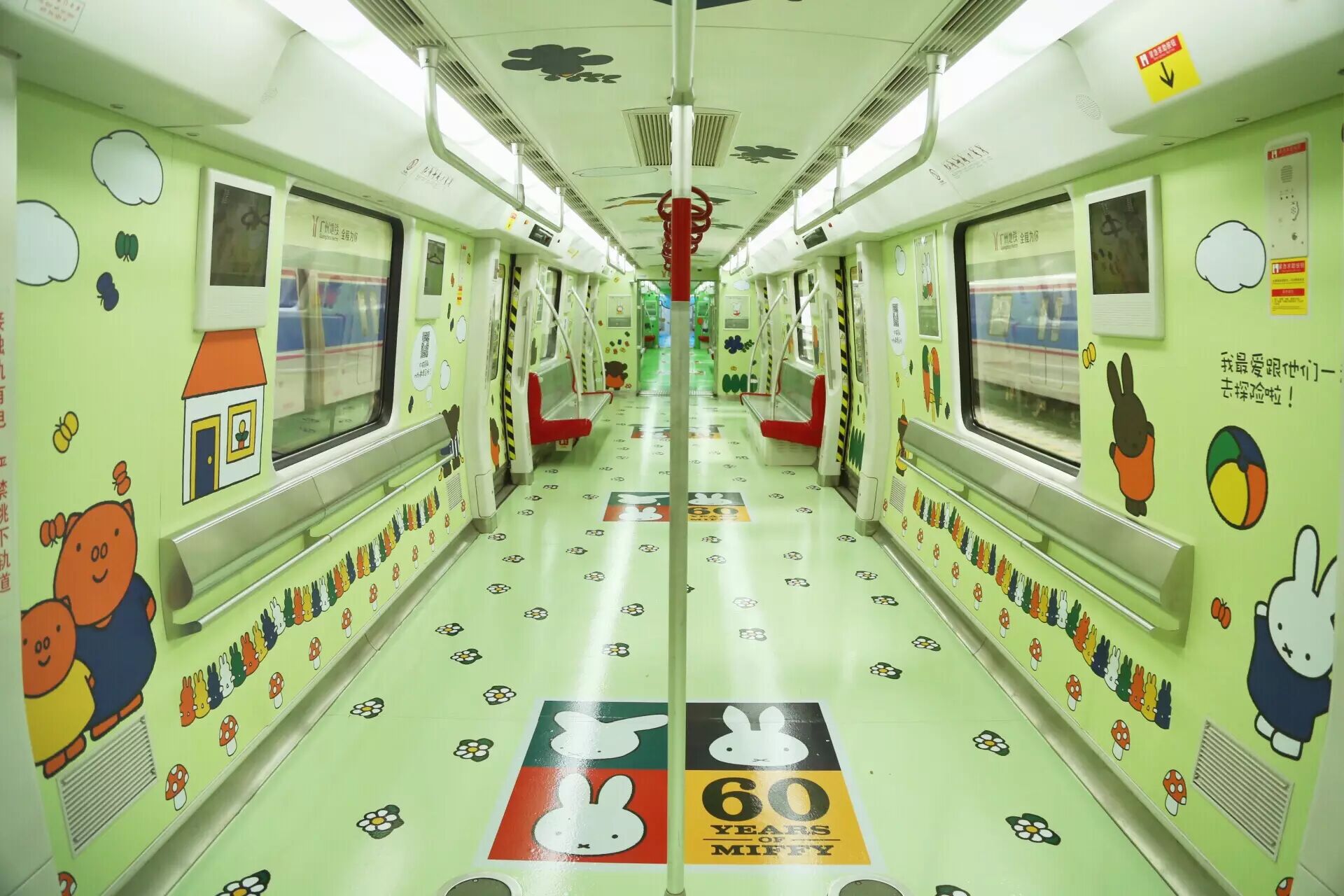 廣州地鐵 6 號線Miffy(米菲)文化專列是全球首列米菲地鐵,不僅車廂內(nèi)全都是米菲元素,并且每個車廂的布置還不一樣哦。據(jù)廣州地鐵透露,搭乘此專列的票價與普通地鐵票價是一樣噠!